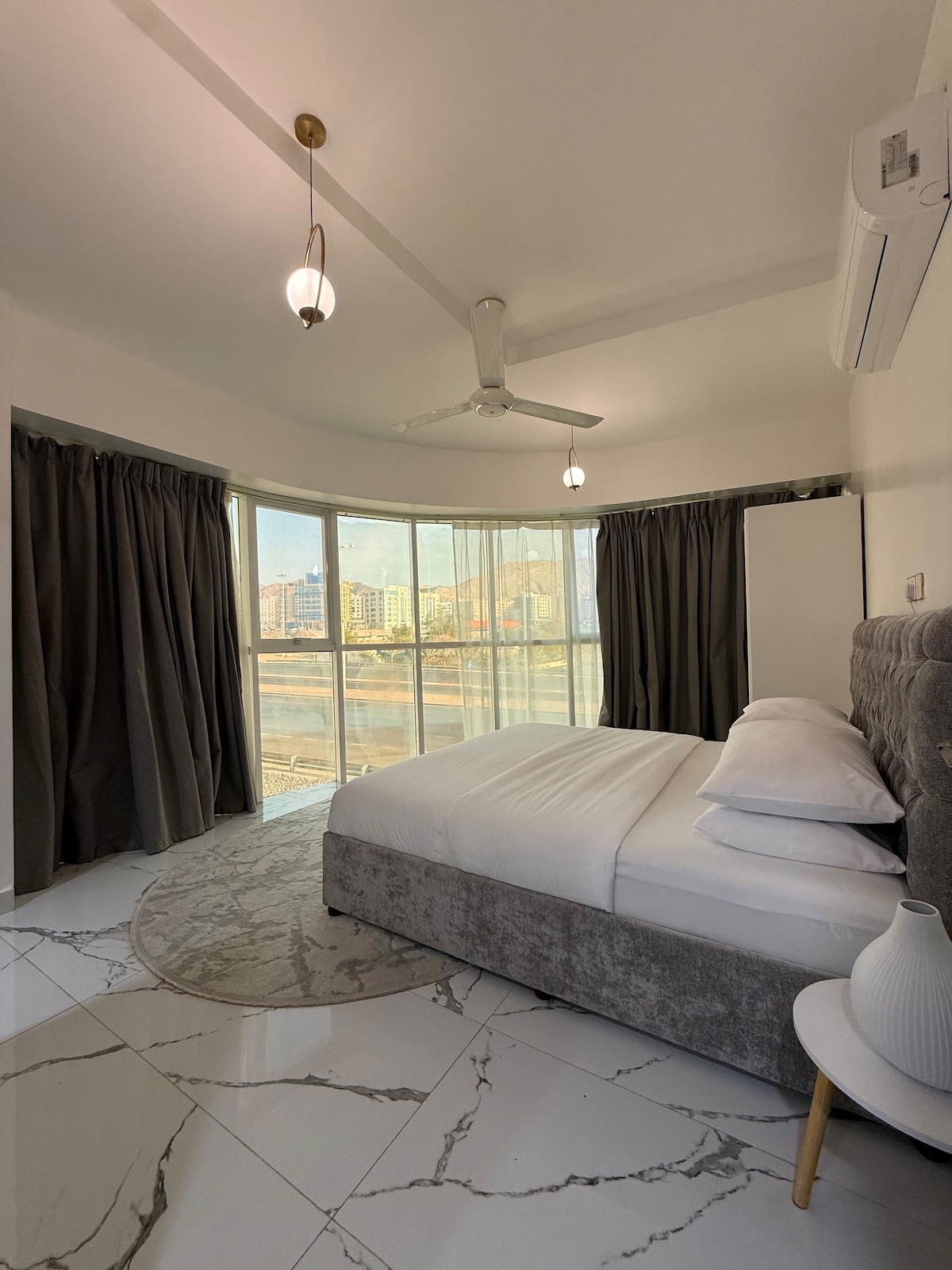 Experience elegant coastal living in this brand new luxury 1-bedroom apartment. designed with modern finishes, this stylish home offers comfort, privacy, and access to premium resort-style amenities in Muscat’s most prestigious waterfront community &10min from airport Perfect for couples, professionals, and long-stay guests access to fantastic facilities that make your stay feel like a resort: • 🏊 Infinity pool overlooking the marina • 💪 Fully equipped gym • 🧘 Sauna and steam room