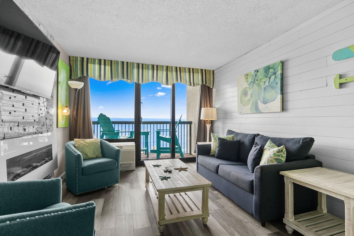 Wake up to breathtaking oceanfront views from this beautifully renovated penthouse condo in Myrtle Beach. With floor-to-ceiling windows overlooking the Atlantic and the beach just steps from the building, this stylish coastal retreat is the perfect place to relax, recharge, and make unforgettable memories. Thoughtfully updated and tastefully decorated, this spacious condo comfortably sleeps up to 5 guests and offers the perfect blend of comfort, convenience, and resort-style amenities.