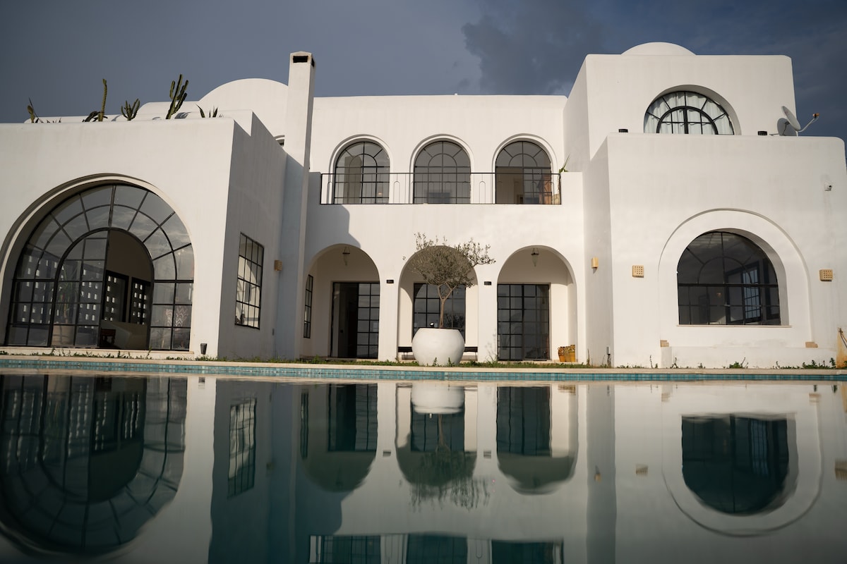 Logement calme et élégant avec vue exceptionnelle sur mer. Trés bien équipée , à 3 min de la plage et à proximité des hotels Sultan et Badira . au rdc, vous trouverez un sallon et salle à manger ouvrant sur une piscine extérieure et un jardin, une cuisine entièrement équipée et d'une suite au 1er étage, vous trouverez la partie nuit composée de 3 suites ayant une vue sur mer. au 2eme étage, se trouve la suite parentale et une vue exceptionnelle entièrement dégagée avec la mer comme horizon.