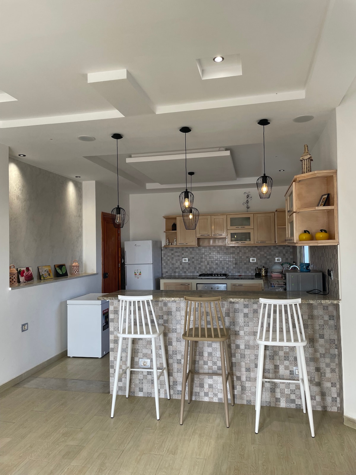 Residence pieds dans l eau Salon et deux chambres en 1er etage avec vue magnifique et accès direct a la plage Un spacieux salon avec une grande terrasse Deux chambres avec dressing Cuisine bien équipée Plage zahra kelibia Une plage magnifique Des maisons haut standing bien équipée