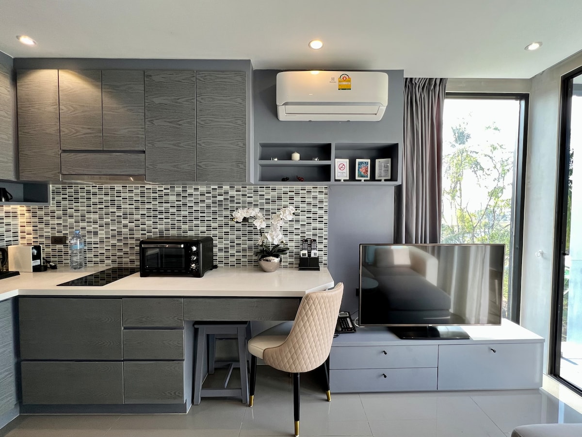 A cozy 23 sq m studio on the 7th floor with jungle views. ✅ All-inclusive. No hidden fees. Utilities included. ✅ Just a 7-minute bike ride to Naiyang Beach and the airport. A supermarket, laundry, cafes, and restaurants are within walking distance. ✅ Enjoy your stay in a condominium with a swimming pool, gym, indoor parking, and rooftop terrace. The apartment is fully equipped with all the necessary amenities for comfortable living, from a washing machine to a coffee machine.