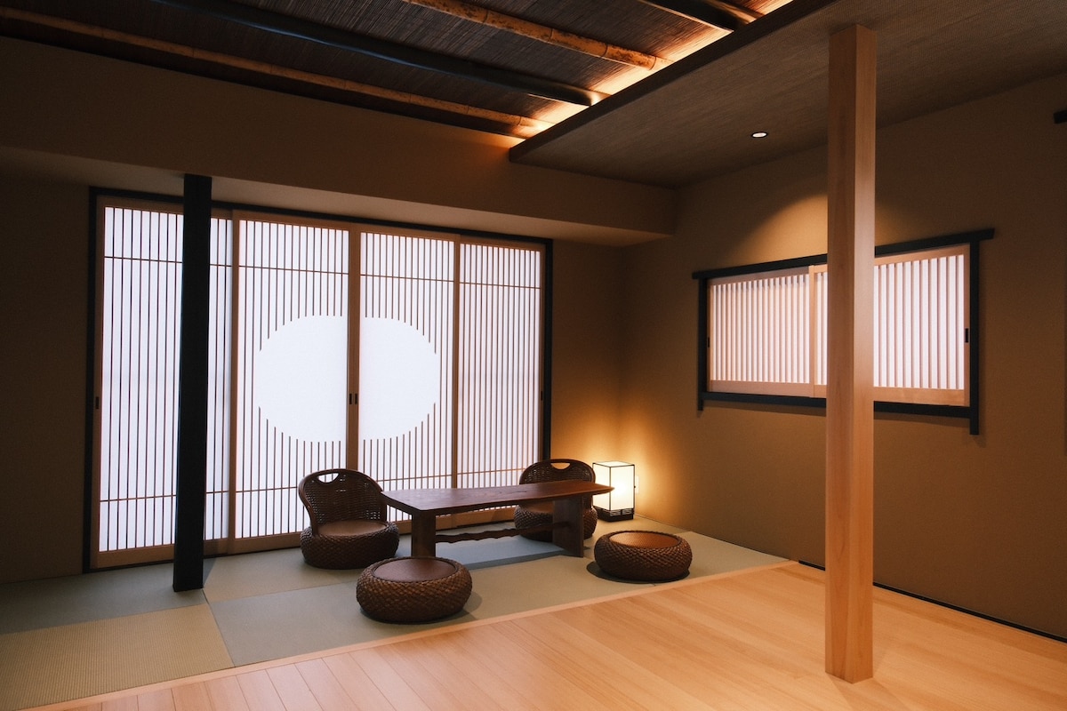 Erneuerung geöffnet! Gleicher Preis für bis zu 3 Gäste. Das Hotel liegt im Zentrum von Kyoto- nur 5 Minuten vom Bahnhof und Lebensmittelgeschäft und 8 Minuten vom Nishiki-Markt entfernt. Koche in der voll ausgestatteten Küche oder erkunde Restaurants und Geschäfte in der Nähe. Entspanne dich im Zypressenholzbad und schlafe in einem Queensize-Bett von Japan Bed Co., dem Lieferanten des Imperial Households. Der Raum verfügt über 2 Waschbecken, 2 Toiletten, einen Waschtrockner und einen großen Schrank - perfekt für längere Aufenthalte. Bitte beachte: Die Übernachtungssteuer der Stadt Kyoto ist beim Check-in in bar zu entrichten.