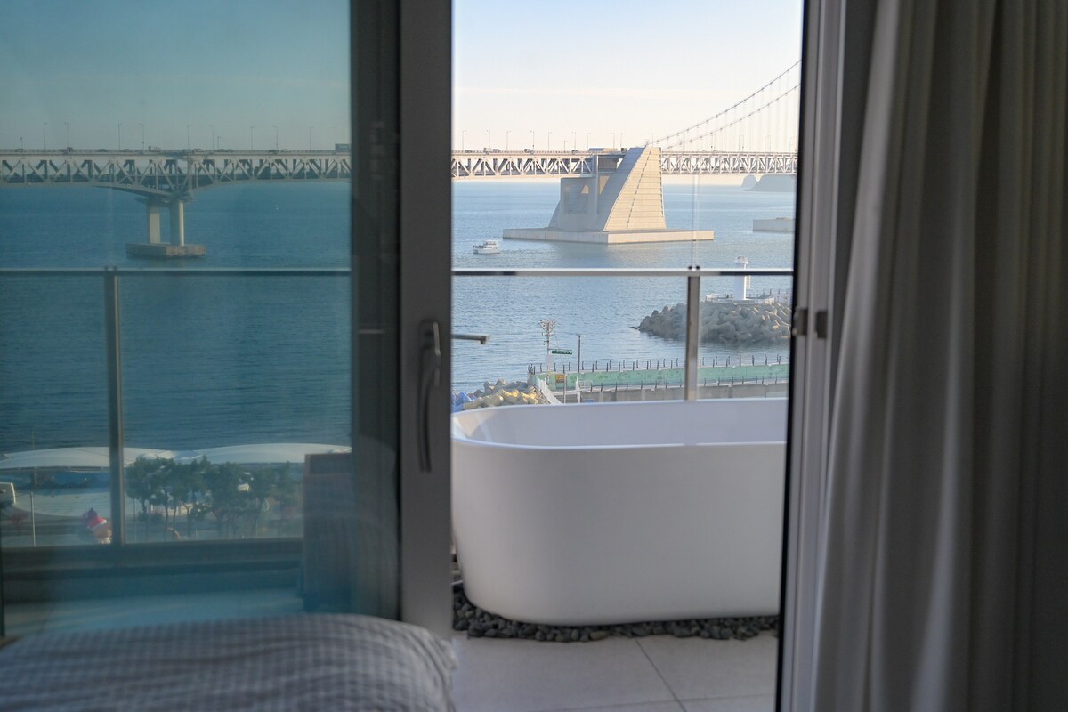 Wir empfehlen einen privaten Rückzugsort, während wir die Gwangan Bridge vom Whirlpool aus betrachten. Die private Pension in Strandnähe eignet sich für große Familien, Workshops und Hobbygruppen. Neben dem Meerblick und dem Blick auf die Gwangan-Brücke übernehmen wir die volle Verantwortung für den Rest unserer Kunden mit einem luxuriösen Interieur.