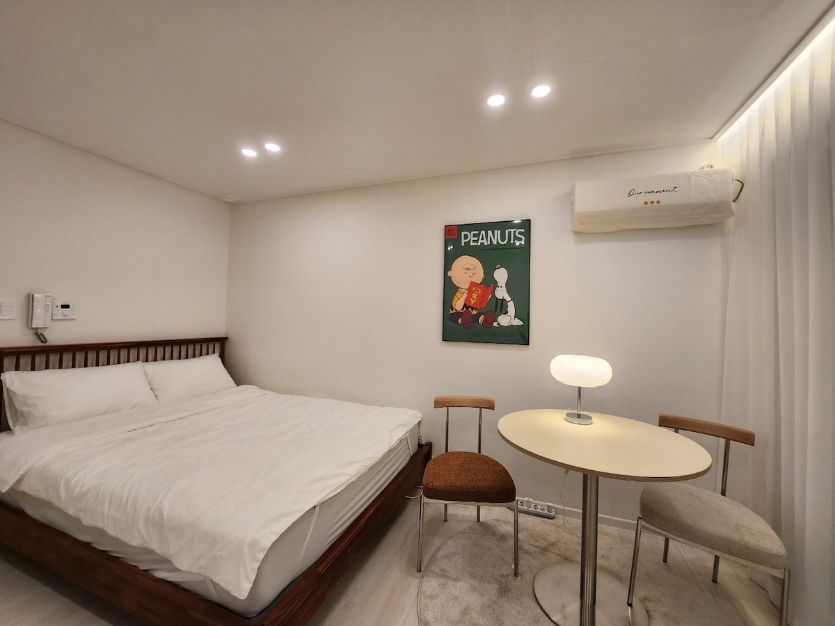 * Basierend auf zu Fuß (3 Minuten vom Busbahnhof, 10 Minuten vom Hwangnidan-gil, 3 Minuten vom Jungang-Markt entfernt) Es liegt in der Nähe verschiedener Touristenattraktionen wie (Supermarkt 30 Sekunden entfernt, Nonghyup Hanaro Mart 7 Minuten entfernt) (Soka, Green Cajon ist innerhalb von 2 Gehminuten erreichbar) * Als Zwei-Zimmer-Konzept gibt es keinen Ort, den du mit anderen Gästen teilen kannst. Gesamte Gemeinschaftsfläche (x) * Kostenlose Parkplätze stehen im ersten Stock des Gebäudes zur Verfügung * WLAN in allen Zimmern verfügbar * Netflix YouTube verfügbar * Hochtemperaturtrocknung und sterilisierte Bettwäsche werden bereitgestellt * Das Bett ist mit einer elektrischen Matte ausgestattet. (Winter) ⭐️Ausstattung:⭐️ * Alle Kochutensilien und Geschirr wie Töpfe, Pfannen, Teller, Schüsseln, Mikrowelle, Heißluftfritteuse, Kühlschrank und Waschmaschine sind vorhanden. * Shampoo, Spülung, Schaumreiniger, Zahnpasta, Duschgel usw. sind ausgestattet. Wir haben kein Wasser❌ in Flaschen zur Verfügung, bitte beachten Sie. - „Besucher sind auch in der Anzahl der Personen enthalten, und wenn du erwischt wirst, dass die Anzahl der Personen übertrifft, werden wir ohne Vorwarnung gehen, also beachte bitte.“ -