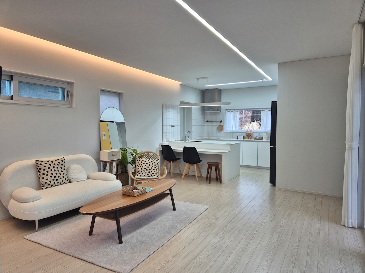 🍀 ‘오롯,쉼’ – 조용한 주택에서 완전한 휴식, 일상 속 작은 쉼표 • 바쁜 일상에서 잠시 벗어나, 온전히 쉼을 선물하는 곳. 이곳에서의 쉼이 행복한 기억이 되길 바랍니다. • 바다와 스페이스워크,죽도시장 등 인기 명소에서 가까운 접근성과 스타일을 모두 갖춘 숙소입니다. • 단독주택 집 대문 앞 작은 공원에서 아이들이 마음껏 뛰어 놀 수 있습니다. 🍀 편리한 교통(다음지도 기준) 포항역KTX에서 오시는길 • 차량 15~20분소요 • 버스 9000번 30분 소요(배차간격45분) 청소년수련관 정류장 하차, 도보4분 280m이동 🍀 주변 명소 🚗2분 스페이스워크, 환호공원, 시립미술관 🚗5분 영일대해상누각 전망대, 포항 해상 스카이워크 🚗12~20분 죽도시장,곤륜산주차장,오도간이해수욕장 🚗25~30분 청하공진시장(갯마을차차차),월포해수욕장,이가리 닻 전망대 🚗40~50분 구룡포시장,일본인 가옥거리,호미곶