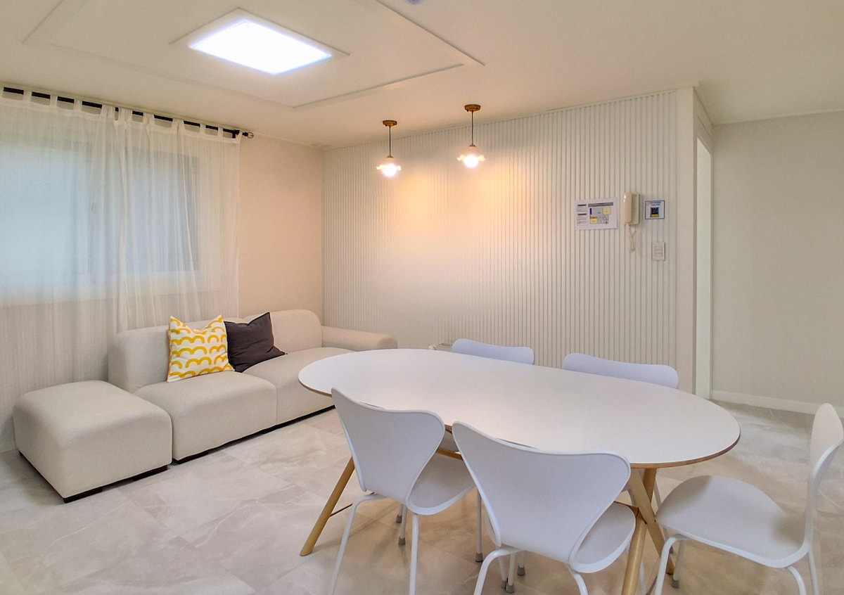 Wechseln Sie ☑️zur Bettmatratze!! Bettwäsche, Pflegeprodukte und Annehmlichkeiten! Wir haben es so vorbereitet, dass du dich entsprechend der Anzahl Personen bequem ausruhen kannst. 1 ☑️Wohnzimmer, 1 Zimmer, 1 Küche, 2 Bäder, 1 Innenbad ☑️Shampoo, Spülung, Duschgel, Handtücher, Föhn, 2 einfache Matratzen * Vorteile 1. Großer Badewannenpool, in dem Kinder bequem spielen können Wir haben einen Innenbadewannenpool, der in einem normalen Haus schwer zu sehen ist, und Sie können ihn mit warmem Wasser frei genießen. Kinder können den Swimmingpool als eigene große Badewanne für Erwachsene nutzen:) 2. Parken Wir haben einen privaten Parkplatz im Haus. Eines ist pro Unterkunft verfügbar. (Wenn du mehr als eines haben möchtest, musst du auf der anderen Straßenseite parken.) 3. Diverses Geschirr und Wasserreiniger Gelieferte Artikel: Induktionsherd, Topf, Bratpfanne, Kochutensilien, Löffel, Chaeban, verschiedene Schüsseln, Tassen, Weingläser, Soju-Gläser 4.LG-Geschirrspüler 5. 2 Toiletten Platz für bis zu 6 Personen, basierend auf 2 Personen🎀