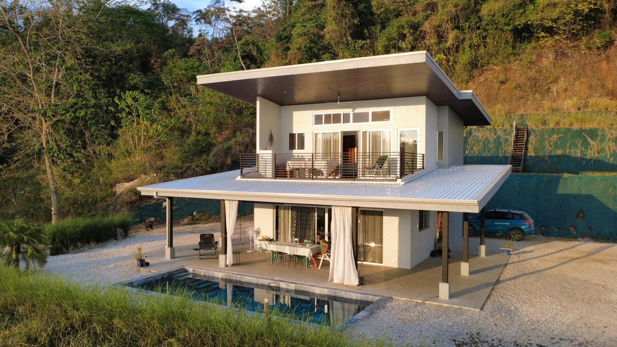Herzlich Willkommen in Hojancha, an einem Ort, an dem die Zeit langsamer vergeht. Erlebt Ruhe, Weite mit über 120 m² Terrassenfreiräumen und Inspiration in unserem modernen Privathaus. Hier, wo die Berge auf den Himmel treffen, geniesst Ihr ungestörte Privatsphäre mit traumhaften Ausblicken und spektakulären Sonnenuntergängen, die jeden Tag einzigartig machen. Das Haus ist ideal für Paare ohne Kinder, für eine stilvolle Auszeit. Moderne Architektur trifft auf liebevolle Antiquitäten. Salzpool