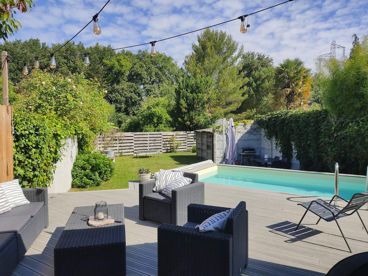 Idéale pour Séjour en famille et voyage d'affaire Villa avec piscine chauffée de mai à fin septembre (7m×3,5m) ,jardin balinais offrant 3 terrasses 3 ambiances différentes. La maison se compose de: 130m2 d'espace cocooning et design: 1 Piece de vie de 50m2 avec salon, salle a mangé, cuisine toute équipée et ilot central de 4m. 4 chambres avec lit double et 1 Master de 23m2 avec lit Queen size, son toilette et sa salle de douche privée. 1 grande salle de douche. 1 toilette. 1 lingerie .