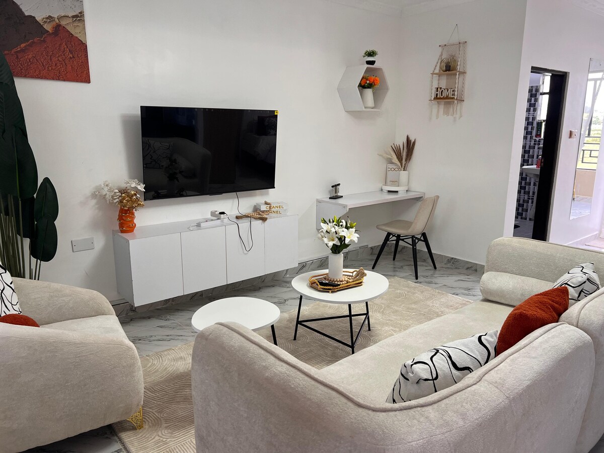 🌟 What You’ll Love A warm and inviting interior with playful pops of color Comfy bed for restful nights A smart TV for Netflix and chill moments Fully equipped kitchenette for light cooking Clean modern bathroom with great water pressure Fast and reliable Wi-Fi 📍 Perfect Central Location You’ll be just a short walk or quick ride away from: Supermarkets & shopping spots Popular cafes and restaurants Matatu & taxi routes Nanyuki Mall, banks, and essential services