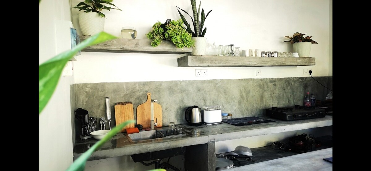 Genieße einen stilvollen Aufenthalt nur 1 Minute vom Hauptstrand von Hikkaduwa entfernt! Dieses brandneue Zimmer bietet modernen Komfort, ein gemütliches Bett, eine Klimaanlage und Zugang zu einer Gemeinschaftsküche. Perfekt für Strandliebhaber und Reisende, die Komfort und Entspannung suchen. Berühmte Restaurants, Geschäfte und das Nachtleben sind in wenigen Minuten zu Fuß zu erreichen!