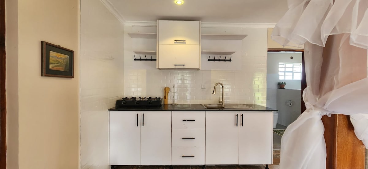 Entfliehe dem Cliffhanger, einem stilvollen und luxuriösen Haus an den Klippen im Greenpark Naivasha, das eine atemberaubende Aussicht und ein unvergessliches Erlebnis bietet. Dieser Rückzugsort mit zwei Schlafzimmern und zwei Badezimmern bietet Platz für vier Personen und ist für Komfort und Entspannung konzipiert. Entspanne dich auf der herrlichen Terrasse mit Blick auf atemberaubende Landschaften oder versammle dich am gemütlichen Kamin, wenn der Abend eintritt. Mit einer voll ausgestatteten Küche, weichen Betten und einem Fernseher mit Netflix ist jedes Detail für deinen Genuss konzipiert.