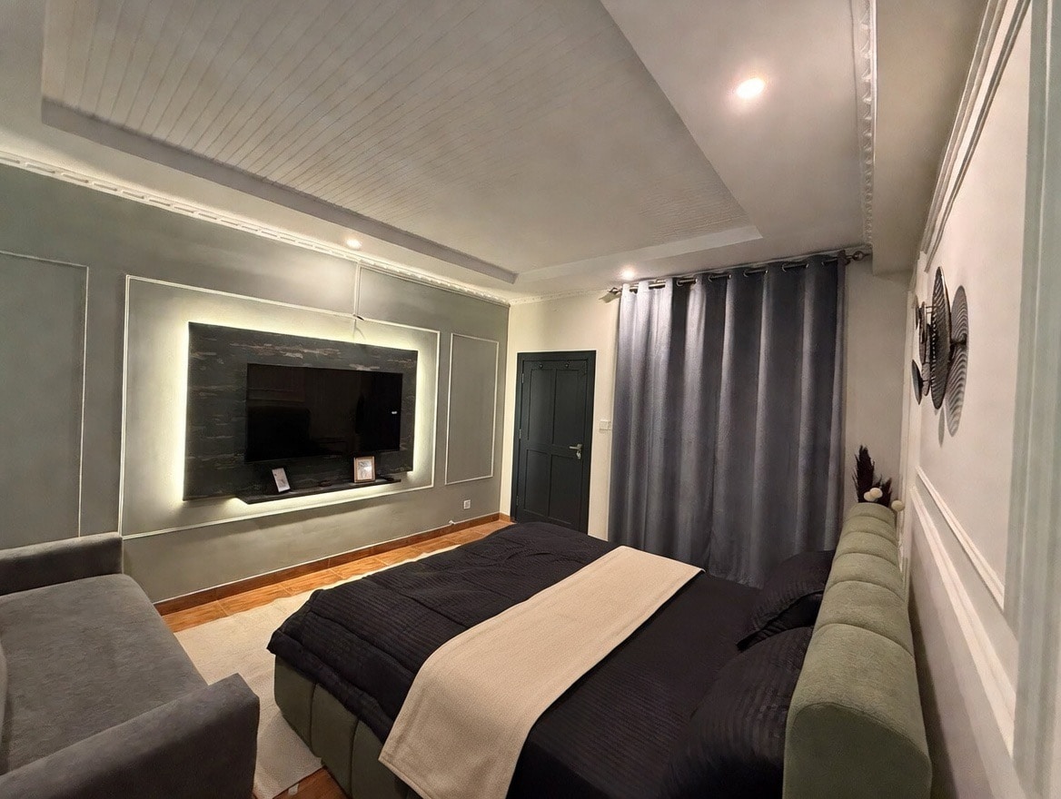 Diese stilvolle Studio-Wohnung ist mit luxuriösem Kingsize-Bett, Android-TV, gemütlicher Bar, geräumiger Küche, sauberem Badezimmer, Klimaanlage, Balkon mit Bergblick ausgestattet und mit allen Annehmlichkeiten für einen luxuriösen Aufenthalt ausgestattet. Es befindet sich in einem sicheren und noblen Gebäude mit 24-Stunden-Service, kostenlosem Parkplatz, Notstromversorgung und Sicherheit. Verfügt über einen hauseigenen Tuc-Shop, einen Grill, ein Lagerfeuer und andere Einrichtungen, um deinen Aufenthalt noch angenehmer zu machen.