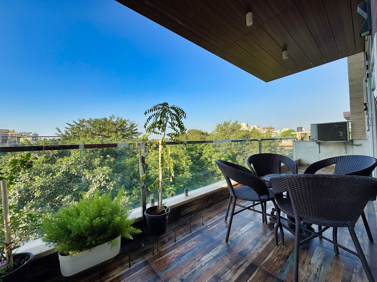 Do you want to bond with family, friends or colleagues in the lap of nature in New Delhi? Do you wish to experience the ideal blend of old-world charm and hospitality with all modern amenities? Do you desire to take a stroll in sprawling lawns under fruit trees or lie in wait for peacocks? If YES then this independent 3-bedroom apartment of Shiv Niwas villa, with private balconies & roof terrace, smart locks, property-wide high-speed Wi-Fi, free car parking & caring lady caretaker-cooks BECKONS!