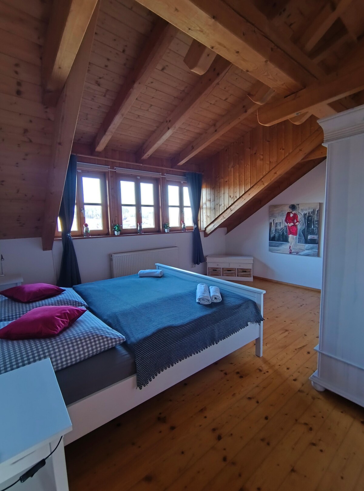 Ein herzliches Servus im Waidla Studio! Suchen sie die perfekte Unterkunft für ihren nächsten Urlaub im Bayerischen Wald? Dann sollten sie unsere neu eingerichtete Stadtferienwohnung in Betracht ziehen. Hier haben bis zu 6 Personen Platz. Die geräumigen Wohnbereiche sind in Buche und Anthrazit-Tönen gehalten und eignen sich perfekt für gemütliche Momente im Inneren. Das Wohnzimmer und der Essbereich sind als offener Raum konzipiert. Im 2. Geschoss, das sie über 2 Treppen erreichen, bef
