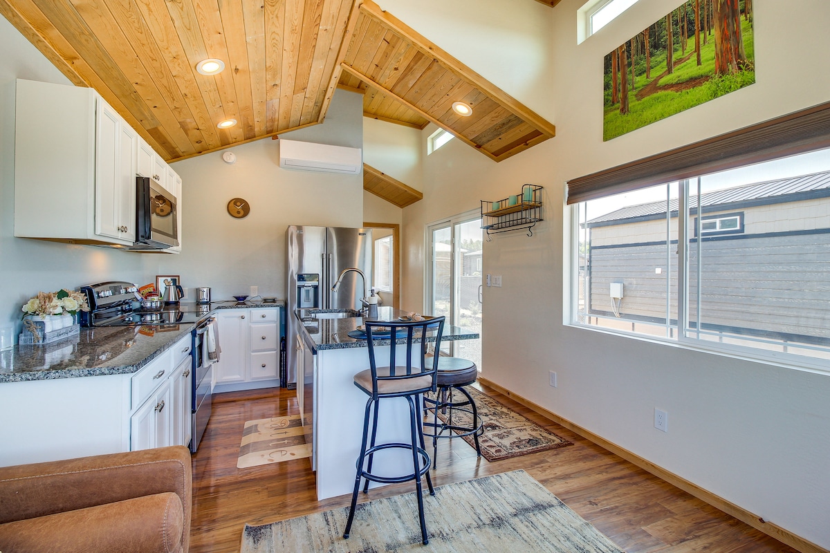 Diese charmante Ferienunterkunft am See bietet den perfekten Ausgangspunkt für einen Pärchen- oder Solo-Rückzugsort! Die voll ausgestattete Küche bietet alles Notwendige, während die Fülle an natürlichem Licht eine einladende Atmosphäre schafft. Ideal gelegen, nur 2 Meilen vom Rainbow Lake entfernt, kannst du mit dieser Unterkunft scheinbar endlose Möglichkeiten zum Wandern, Angeln und Bootsabenteuer erkunden. Erlebe die Schönheit der Berge von Arizona und schaffe bleibende Erinnerungen in diesem entzückenden Tiny House mit 1 Schlafzimmer und 1 Bad!