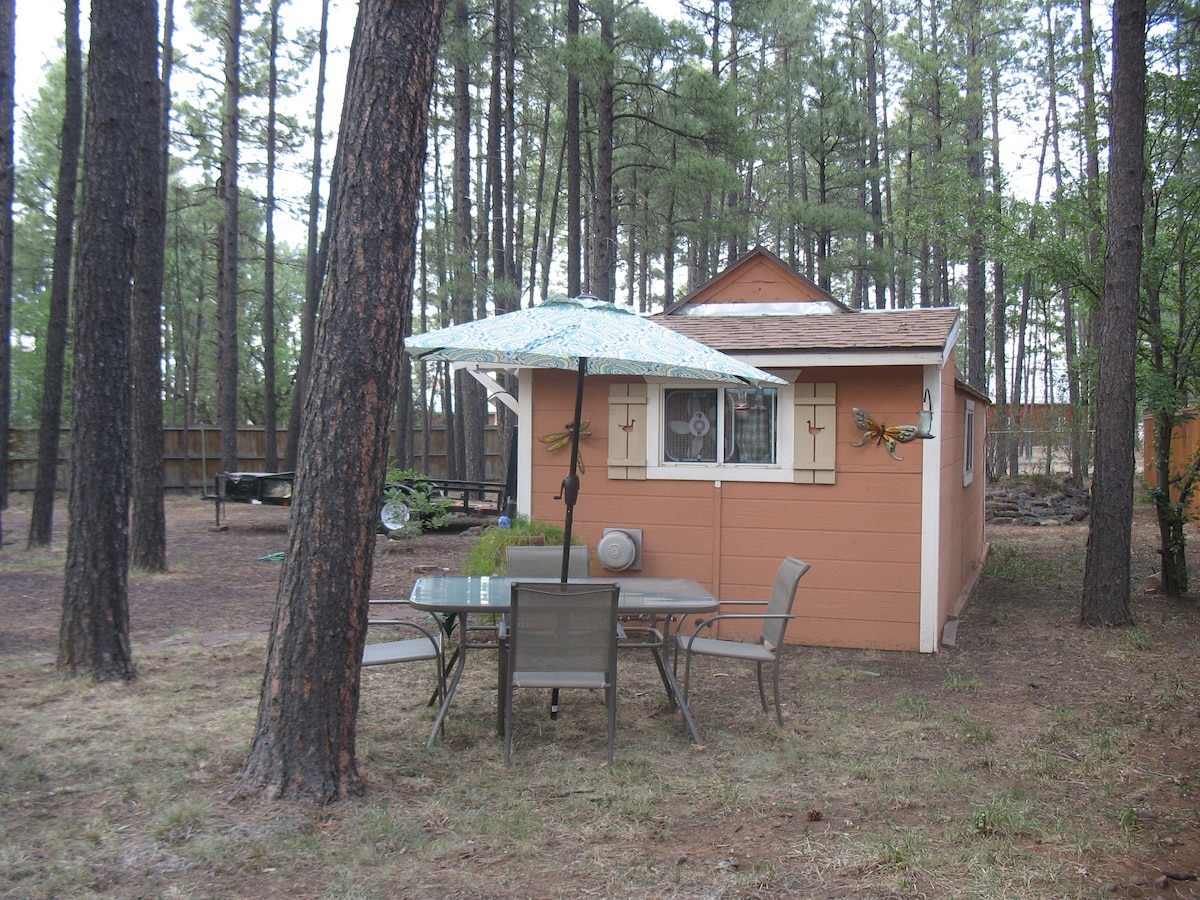 Entspanne dich und erkunde alles, was Show Low/Pinetop zu bieten hat, mit unserem luxuriösen kleinen Ferienhaus als deinem Hauptquartier. Schöne Quarz-Theken, maßgeschneiderte Dusche und Dekoration erwarten dich im Luxury on Lariat! Genieße das Grillen und das Essen im Freien oder genieße die berühmten Restaurants in der Umgebung, die nur wenige Minuten entfernt sind. Unsere Unterkunft bietet ein privates Schlafzimmer mit einem Queensize-Bett, ein Loft mit 2 Einzelbetten, perfekt für die Kinder (niedrige Decke). WLAN-Internet ist inklusive. 2 kleine Hunde bis jeweils 16 kg