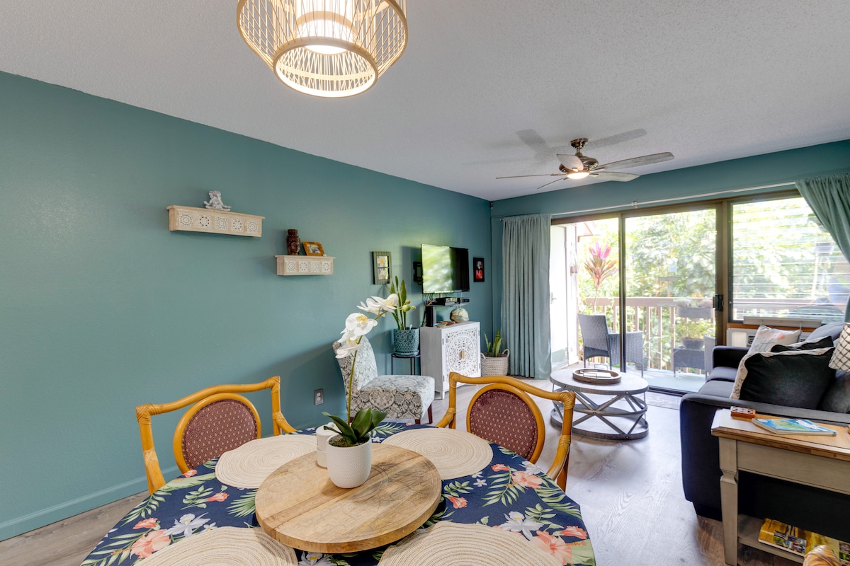 Aloha und Willkommen! Wir sind stolze Superhosts auf Airbnb, die für ihre herzliche Gastfreundschaft und Liebe zum Detail bekannt sind. Dies ist unser zweites Inserat und wir freuen uns, dich begrüßen zu dürfen. Hell, luftig und voller Inselcharme, diese Wohnung im Strandstil, die einen schönen Blick auf das Meer und die Berge bietet, verfügt über aktualisierte Schlafzimmermöbel aus geschnitztem Holz und eine private Veranda mit atemberaubendem Meerblick. Dein eigener Parkplatz. Ein friedlicher Rückzugsort, der sich einzigartig Kauai anfühlt.