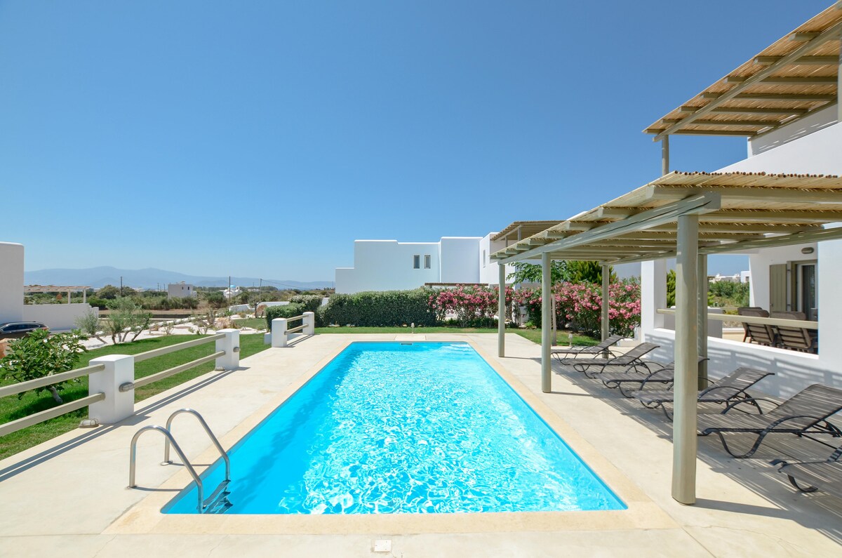 Luxuriöse Villa in ruhiger Lage in Strandnähe. Velonis Villas befindet sich in Naxos, nur 950 Meter vom Strand von Agia Anna, 2 km vom Strand von Plaka und 2 km vom Strand von Agios Prokopios entfernt. Alle Strände sind komplett organisiert und verfügen über Cafés, Restaurants, Bars und das Nachtleben. Die Unterkunft liegt 6,5 km vom Hafen und 2 km vom Flughafen entfernt. Sie verfügt über 4 Schlafzimmer, 3 Badezimmer, 2 Wohnzimmer, eine Küche, einen Swimmingpool, einen Fitnessraum, einen Whirlpool im Freien und einen Grill im Garten.