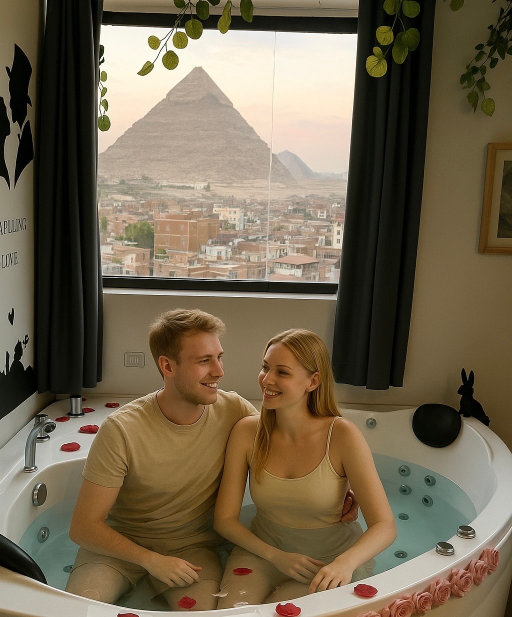 Whirlpool mit Blick auf die Pyramiden des Pharaos