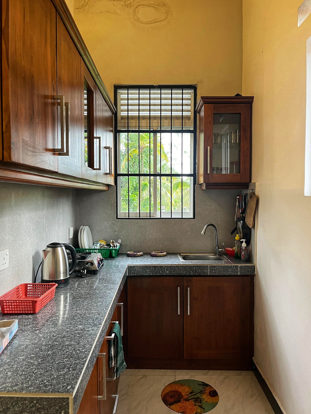 Escape to Keera Villa, a tranquil 2-bedroom retreat perfect for up to 4 guests, just 20 minutes from Katunayake Airport and 5 minutes from the highway entrance. Featuring a king bed, two single beds, two washrooms, a fully equipped kitchen, and in-unit laundry. Each bedroom has a 43" Smart TV, Wi-Fi is included, and air conditioning ensures your comfort. Set in a serene environment surrounded by lush fruit trees and peaceful farm animals, enjoy the private pool for a relaxing stay.