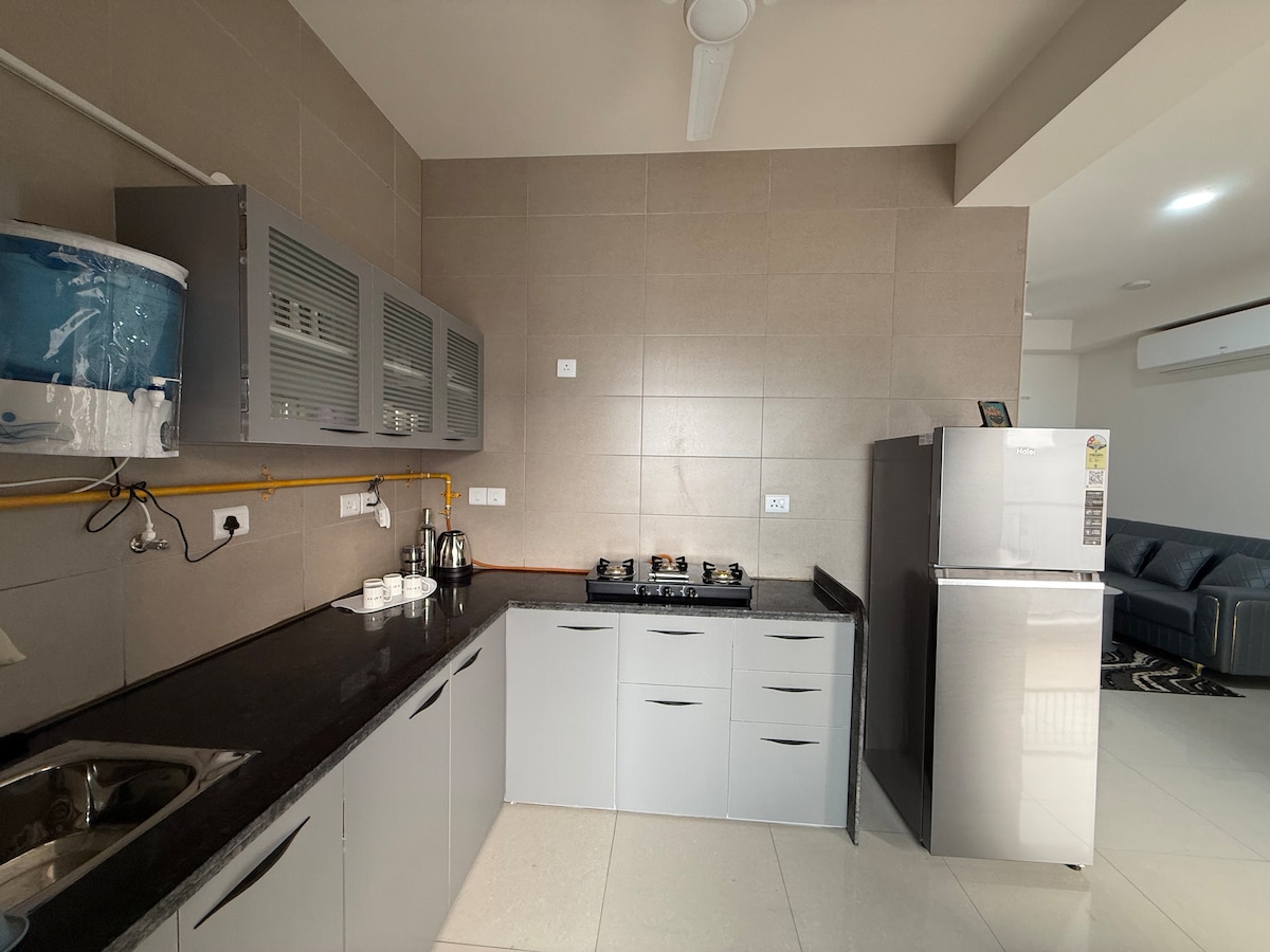 “ Sobha Dream Heights “ Welcome to a truly elevated living experience on the 33rd floor of Sobha Dream Heights, offering breathtaking skyline views, abundant natural light, and a calm atmosphere above the city. Thoughtfully designed with modern interiors, premium furnishings, and elegant finishes, the apartment blends comfort with sophistication. Enjoy the private 2BHK apartment with complete privacy, ideal for business travelers, relaxing getaways, or long stays—a stylish retreat in the sky