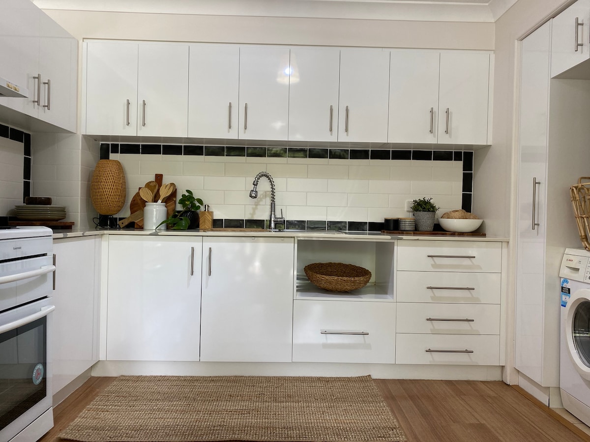 Take my hand and let me guide you to the Water through the Woods… Water & Woods is a self-catered cabin of cosiness, nestled under a canopy of trees, and just steps away from the Purling Brook Falls hiking trails. Here is your opportunity to relax… or be active – surrounded by a very special part of the Gondwana rainforest, less than 50 minutes from the hustle and bustle of those bright lights of the Gold Coast. Yes, that’s what you’re seeing from the breakfast bar.