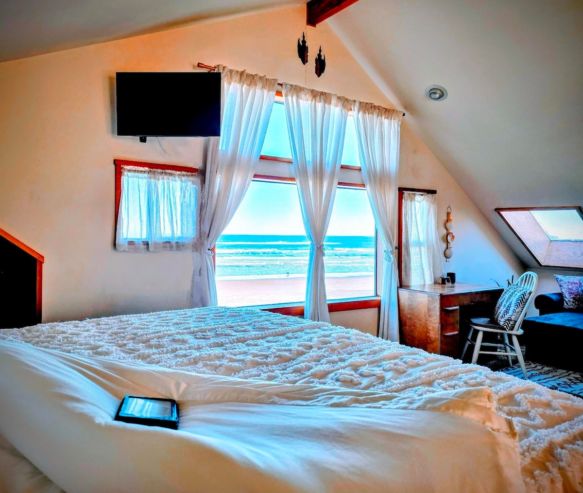 Casa Del Mar ist ein malerisches Haus am Meer in der ruhigen Gemeinde Tierra Del Mar. Mit raumhohen Fenstern wurde dieses Haus an der Küste Oregons geschaffen, um die schöne Aussicht und die Klänge des Pazifiks zu präsentieren. Das stilvolle und gemütliche A-Rahmen-Haus verfügt über 2 Schlafzimmer und 2 Badezimmer und bietet Platz für 6 Gäste. Genieße die unvergessliche Schönheit rund um dieses Haus vom Balkon mit Meerblick oder mach ein Lagerfeuer auf der neu renovierten Terrasse.