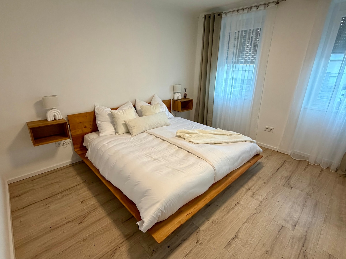 Enjoy a relaxing stay in this bright and welcoming apartment. The open-plan living area includes a fully equipped kitchen with modern appliances. The bedroom offers a peaceful retreat with plenty of natural light, with a full-size large bed, and a fold-out sofa .The bathroom features a full-sized bathtub for your comfort. Features: 5 minutes to the city center Private internal yard 2 minutes to TARO American Bar 10 minutes to the Hauptbahnhof (Main Train Station) 5 minutes to Eurospar