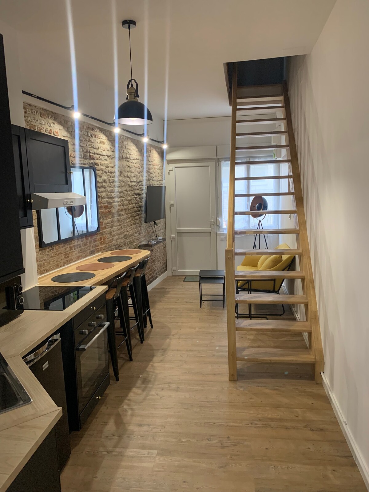 🚨🔔 Genießen Sie eine elegante und ultrahelle Unterkunft 💡🌟 ➡️ Dieses hübsche, renovierte Studio ist sehr hell💡💡. Es befindet sich im ersten Stock eines schönen typischen Nordgebäudes 🏡 und bietet einen funktionalen Raum, der Folgendes umfasst: ✅ Eine Büroecke (Arbeitsbereich)💼 🗄️ ✅ Eine Dusche mit VMC, Toilette, Waschbecken + Waschtisch und Spiegel 🪞 ✅Eine Küche/Kochnische 🧑‍🍳 ausgestattet mit Dunstabzugshaube und einem Essbereich 🍽️. ✅ Ein Fernseher 📺 mit Netflix, Disney Plus, Internet🛜, WLAN und mehr.