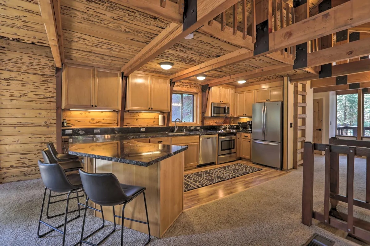Escape to our Craftsman cabin—where mountain charm meets modern comfort. Just six blocks from the lake, perfect for up to 4 guests: cozy up by the gas fireplace, cook in the fully equipped kitchen, and unwind in the clawfoot tub or infrared sauna. Two dedicated desks make remote work easy. Step out the back to wooded trails with a creek and lake views; walk to the beach and local restaurants, and reach top ski resorts ~15 minutes away. The ideal base for a restful, memorable stay.