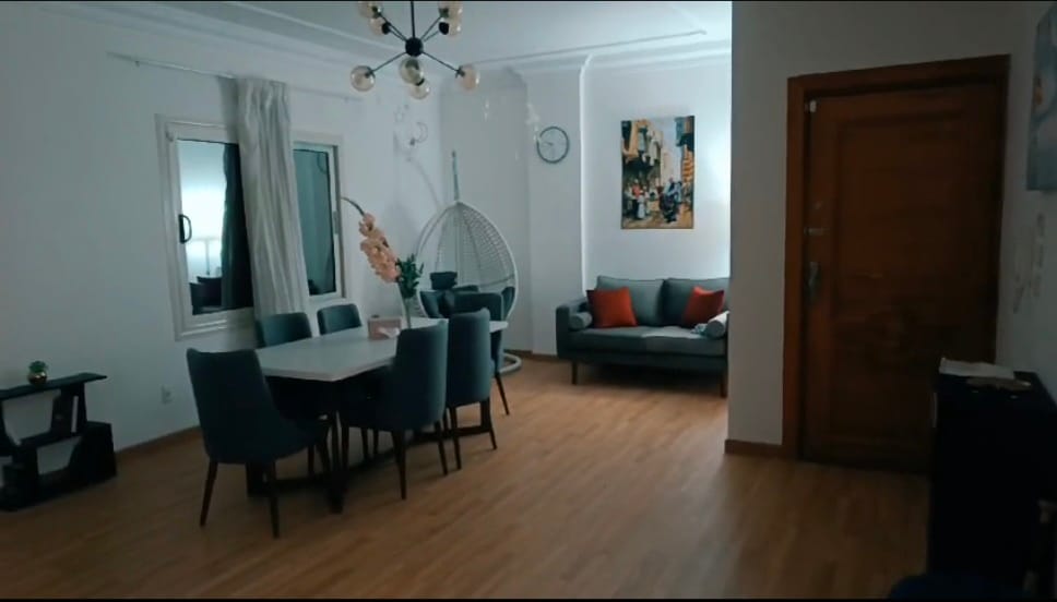 Spacious 250 sqm Apartment in a Secure Compound 🌟 Enjoy your stay in this modern, fully furnished 250 sqm apartment located inside a gated and secured compound, just 2 minutes from Mivida and Hyde Park. ✨ Highlights: • Spotlessly clean & well-maintained • Fully equipped with everything you need • High-speed Wi-Fi • Stylish, almost brand-new furniture • LG Sound Bar for an enhanced audio experience • Smart TVs connected to the internet • Hair dryer • Iron Perfect for families
