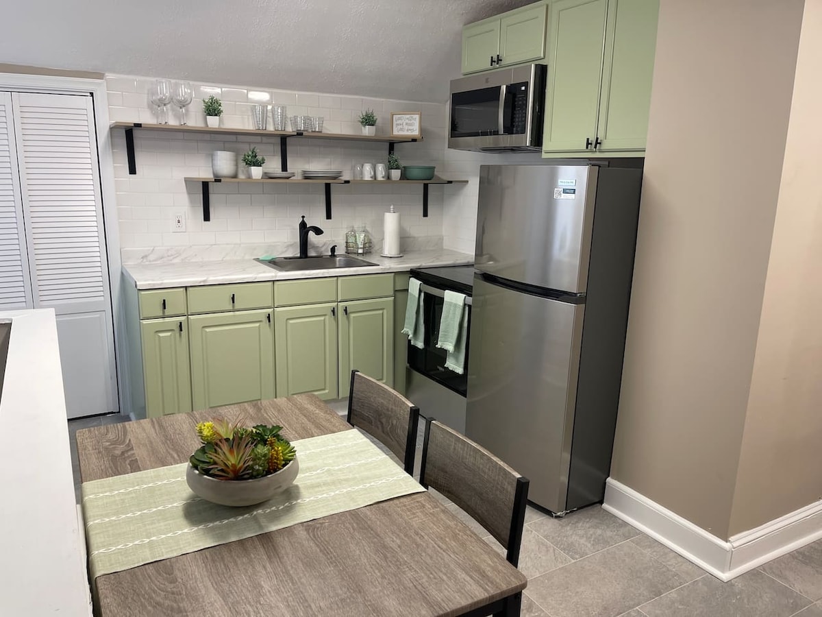 Diese zweistöckige Wohnung ist nur eine kurze Fahrt von den meisten Sehenswürdigkeiten Wilmingtons entfernt und liegt günstig in der Nähe der I-95, sodass es auch leicht ist, andere Städte in der Nähe zu erreichen. Es wird sich wie dein eigenes kleines privates Stadthaus mit eigenem Eingang und vorderer Terrasse anfühlen. Du kannst auch bequem zu Fuß zu Restaurants in der Innenstadt gehen. Du kannst Mahlzeiten in der Küche zubereiten und sie im angrenzenden Esszimmer genießen. Das größere Schlafzimmer verfügt über einen Schreibtisch für Studenten/Geschäftsreisende.