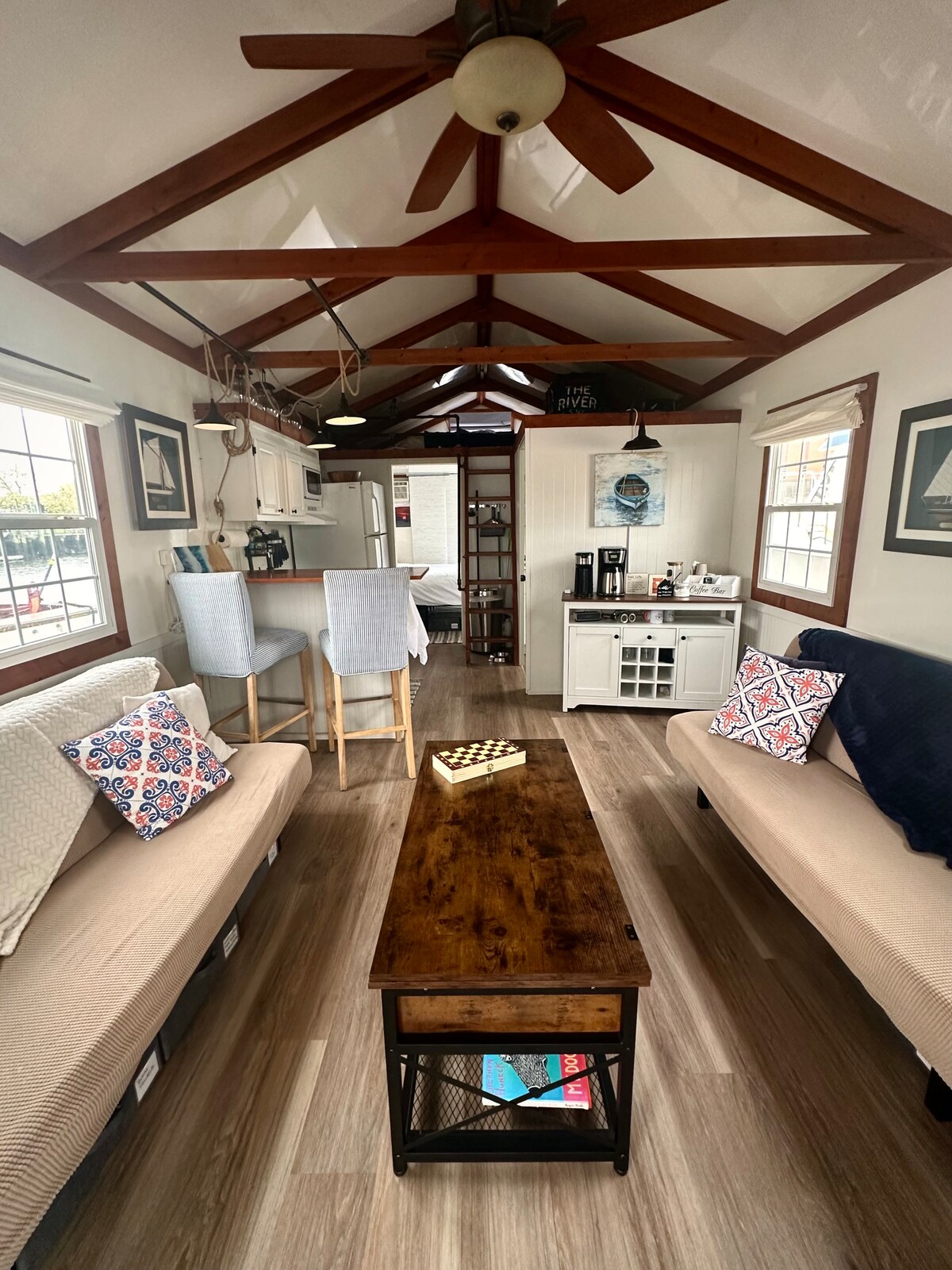 Perfekt renoviertes, nautisches Hausboot am malerischen Peconic River. Mit zwei malerischen Schlafzimmern, einer voll ausgestatteten Wohnküche und einem Wohnzimmer mit Panoramablick auf den Fluss. Genieße deinen Morgenkaffee auf dem Außendeck und genieße dabei den Sonnenaufgang. Diese historische Stadt am Wasser wurde von Forbes Advisor zu den „Best Places to Travel in 2023“ ernannt — eines von nur 11 US-Reisezielen auf der diesjährigen Liste. Ein Muss für Abenteurer und Familien gleichermaßen!