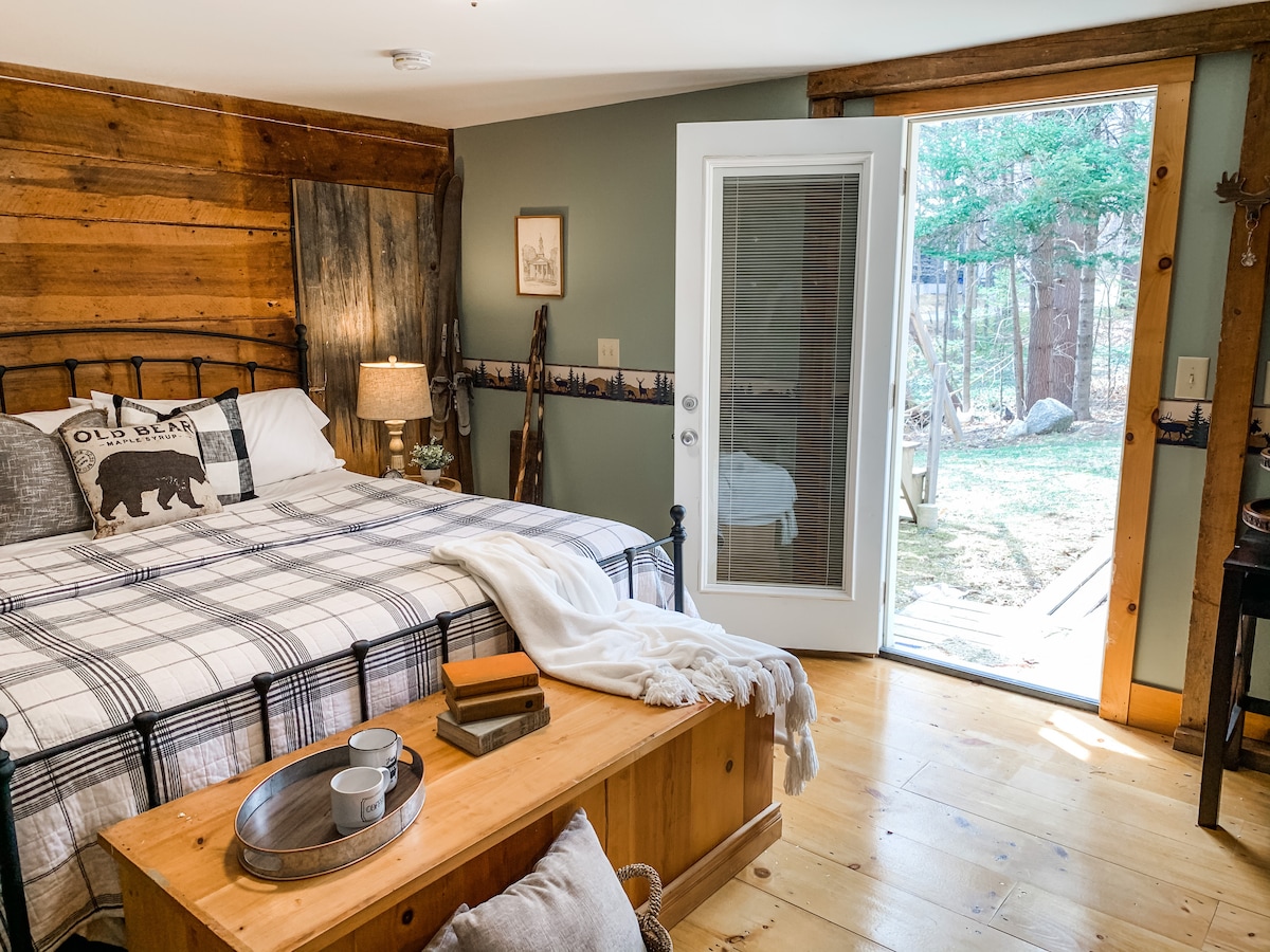 #BarnQuiltHouse Gemütliche, private Gästesuite mit Whirlpool in den bewaldeten Hügeln einer malerischen Bauernstadt in New Hampshire. Wohngegend, zentral gelegen im Süden von New Hampshire. 20+/-Minuten nach Concord, Manchester Airport, St. Anselms College, New England College, Pat's Peak, Crotched Mountain. Fahre nach Norden in die Seenregion, nach Westen zum Mt. Sunapee oder nach Süden, um Boston zu besuchen... alles innerhalb von eineinhalb Stunden Fahrt. Möge der Frieden der Wildnis mit dir sein.