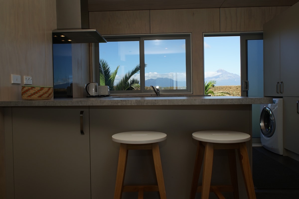 Hallo, ich bin Edward! Schau dir unser Instagram @ecoescape für weitere Fotos und Informationen an! Dieser Rückzugsort ist ein zweiteiliges, winziges Haus am Fuße des Taranaki mit unübertroffenem Bergblick. 15 Minuten von der Stadt und dem Strand entfernt, nur einen Steinwurf vom Berg und den Radwegen entfernt, ist dieses in sich geschlossene, winzige Haus ein perfekter Ort für diejenigen, die Taranaki für ein Abenteuer oder zum Entspannen besuchen möchten. Angetrieben von Solarmodulen und Hydroturbinen, ist dieser Ort so „autark“ wie es nur geht. Wir freuen uns darauf, dich wieder bei uns zu haben!