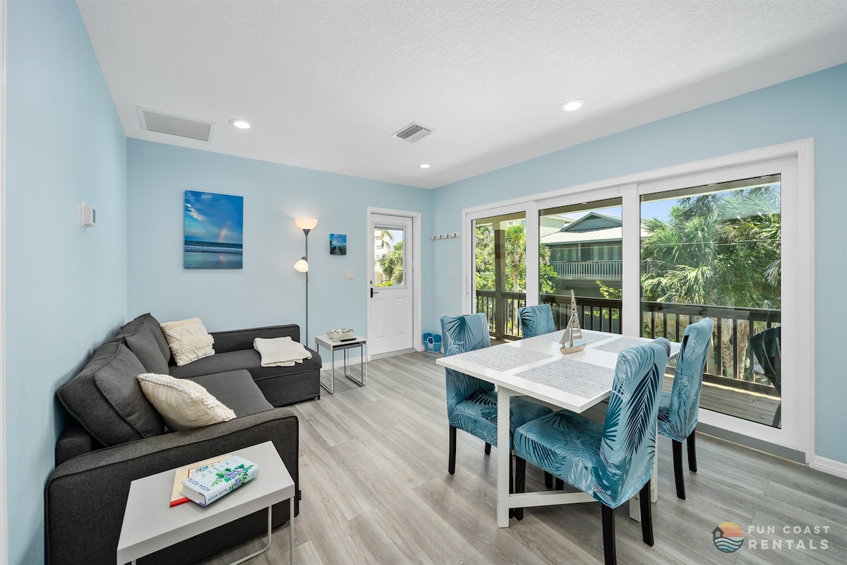 Dein NSB Pied-à-terre erwartet dich und ist perfekt gelegen, nur 30 Gehminuten vom Strand entfernt! Casa Delmar ist der ideale Rückzugsort für Paare, die den entspannten NSB-Lebensstil in sauberen und gemütlichen Unterkünften ohne den ganzen Aufwand eines großen Hauses erleben möchten. Langer Tag am Strand? Wasche dich in der Außendusche ab und entspanne dich auf der geräumigen Terrasse, während du dem Ozean lauschst! Zentral gelegen, nur wenige Gehminuten von vielen Geschäften und Restaurants entfernt und nur eine 7-minütige Fahrradfahrt von der Flagler Ave entfernt!