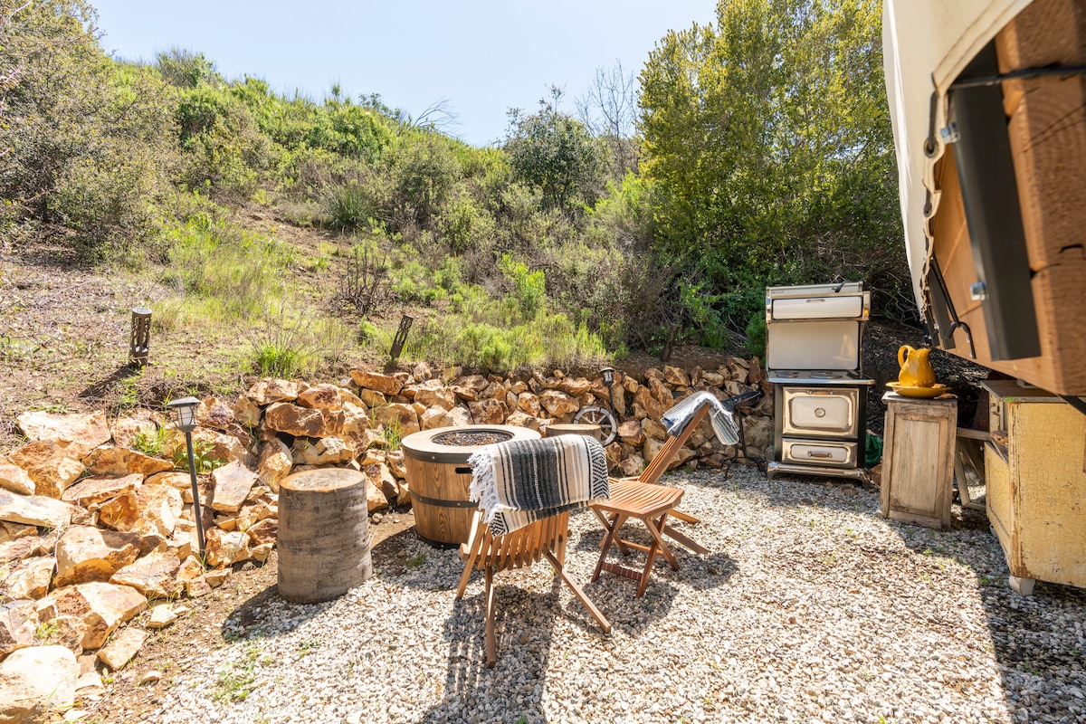 Erlebe luxuriösen Glamping-Komfort in einem Pioneer Conestoga-Wagen mit Kingsize-Doppelbett! Mit einem weichen Bett und passenden Etagenbetten ist unser Wagen perfekt für ein romantisches Wochenende, Familienabenteuer, Mädchen-/Jungenreise oder nur für ein paar Tage unterwegs! Eingebettet in die wunderschönen Berge von Santa Monica mit wunderschöner Aussicht und Eichen ist dieser Aufenthalt ein voller Rückzugsort! Nebenan befindet sich die Prospector Ranch mit einem authentischen Saloon, Pferden und Wander- und Radwegen. LA, die Autobahn 101, Strände, Brauereien und Weingüter sind nur wenige Minuten entfernt!