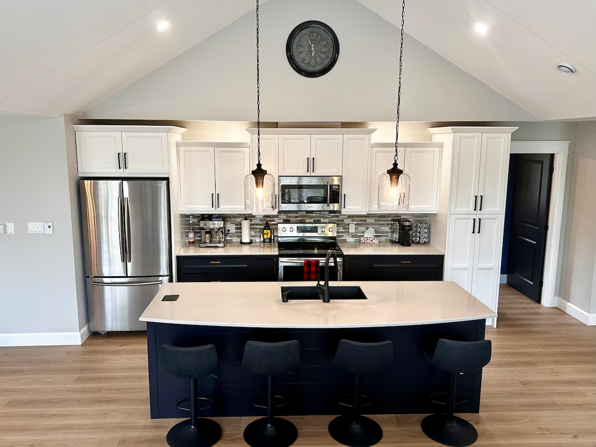 Lehne dich zurück und entspanne dich – in dieser ruhigen, stilvollen Unterkunft. Wasserblick von jedem Fenster aus. Genieße ein Bad in der Badewanne nach einem Filmabend im Kinosaal oder genieße ein Bad im privaten 2-Motor-Whirlpool mit 44 Düsen für ultimative Entspannung (gegen Gebühr). Die Suite ist bürofertig. Die Küchenzeile ist mit Gegenständen ausgestattet, um einfaches Kochen zu ermöglichen und deinen Aufenthalt komfortabel zu machen. Premium-Lage zu Stränden, Badeseen, Wanderwegen, Geschäften, nur 15 Minuten von der Innenstadt von St. Johns, Flughafen, Signal Hill