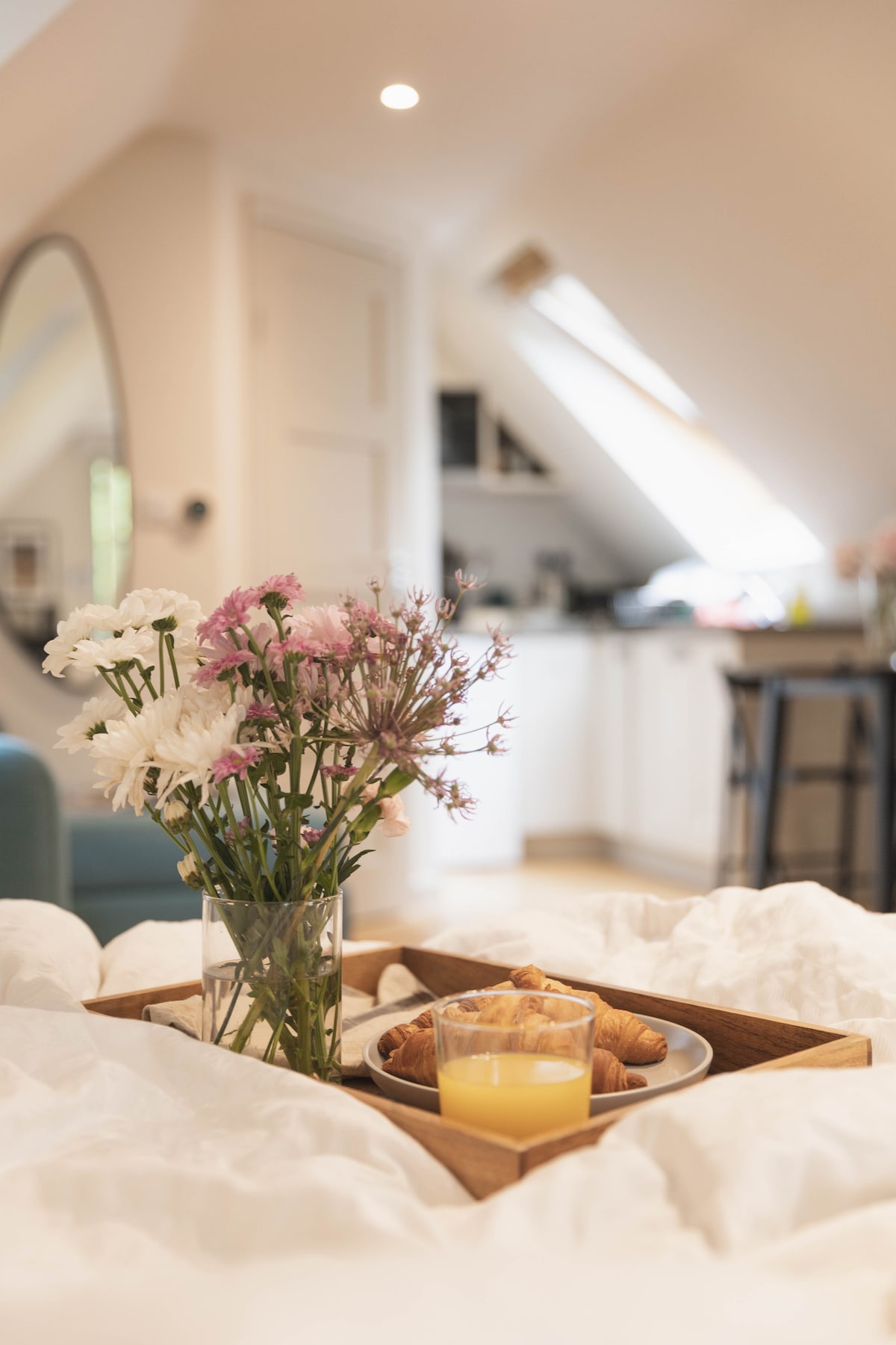 Unsere von einem Chalet inspirierte Studiobahn mit gewölbten Decken und Eichenbalken ist im Sommer hell und luftig und im Winter schön warm und gemütlich, mit Fußbodenheizung im gesamten Gebäude. Sie ist komplett unabhängig und verfügt über einen separaten Eingang vom angrenzenden Familienhaus. Mit einem luxuriösen Superking-Bett (oder zwei Einzelbetten), einem Schlafsofa, unbegrenzt schnellem WLAN und HDTV ist dir ein erholsamer und einladender Aufenthalt in einer familienfreundlichen Umgebung auf dem Land in East Sussex sicher.