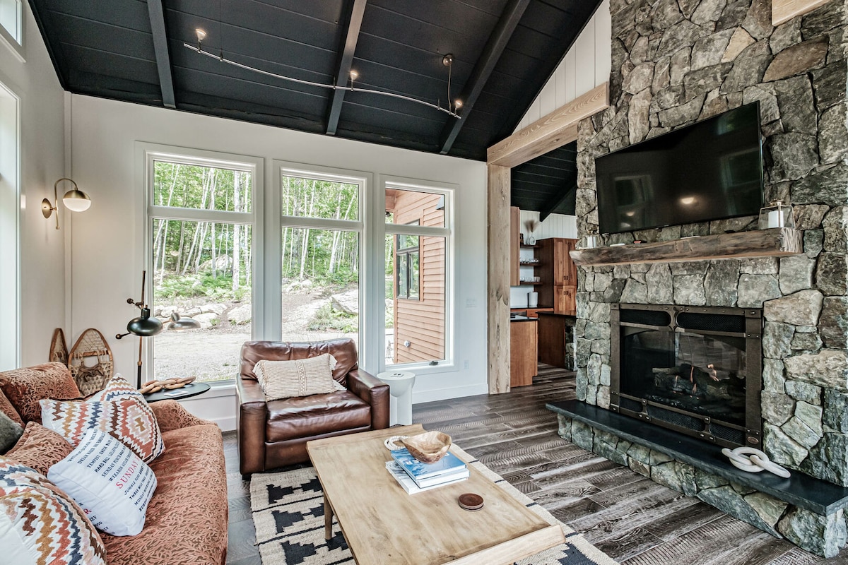 Wir haben die Wren Cabin als einen ruhigen Raum voller Licht und Kunst und mit vielen gemütlichen Details gebaut. Hochgezogene Decken, eine Wendeltreppe und ein großes offenes Konzept mit einem Schlafzimmer im Dachgeschoss. Die Hütte verfügt auch über eine wunderschöne holzbeheizte Sauna für die kälteren Tage. Die Wren Cabin verfügt über eine große umlaufende Terrasse zum Entspannen und eine Feuerstelle im Freien sowie gemeinsamen Zugang zum Adams Pond. Die Unterkunft ist modern skandinavisch, hell und luftig und mit durchdachten Details gefüllt.