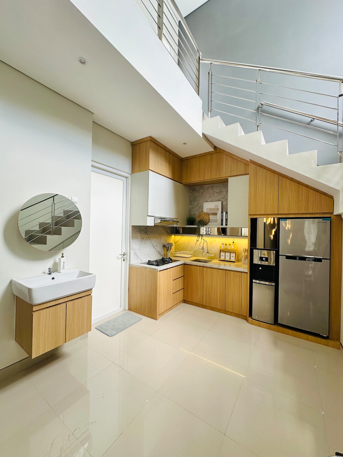 Casalista House: Modern Oasis in the City Kamar 1 (lantai 1): 2 kasur ukuran 140x200 (muat 4 orang) Kamar 2 (lantai 2): 1 kasur ukuran 200x200 (muat 2 orang) Kamar 3 (lantai 2): 1 kasur ukuran 140x200 (muat 2 orang) Escape to our stunning 2-story minimalist home, nestled in a quiet gated community. Our beautiful garden creates a fresh and peaceful atmosphere, making it an ideal retreat for families, friends, and couples.