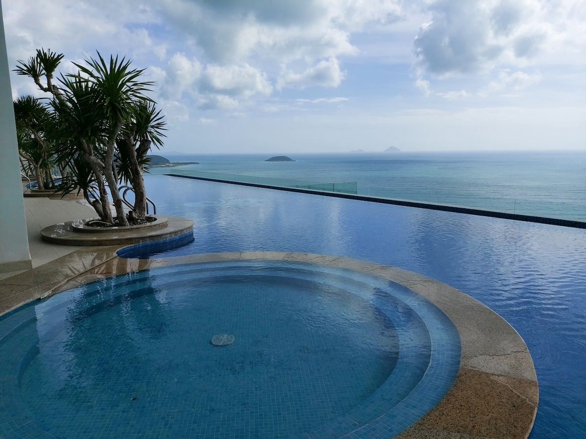 Diese geräumige, voll möblierte Wohnung ist Luxus auf 5-Sterne-Standards auf der hohen Etage, mit separatem Schlafzimmerund Badezimmer ( Badewanne und Dusche, Badezimmerskala, Warmwasser), Küche und Esszimmer, privatem Wohnzimmer mit großem Schlafsofa und Tisch, 50-Zoll-Fernseher(> 60 Kanäle), WLAN, großem Kühlschrank, Waschmaschine, 3 Klimaanlagen im Schlafzimmer, Wohnzimmer und Küche. Ein großer Balkon ( mit Tisch und Stühlen) mit Blick auf das Meer bietet einen atemberaubenden Blick auf den Strand und die Insel Vinpearl jenseits des Meeres.