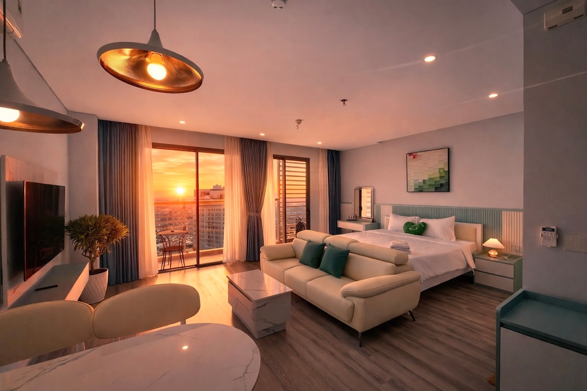 Welcome to our Sunnyhomes ! With perfect location : 2 mins walking to the Tran Phu Road and Beach. 5 mins walking to Tram Hương Tower (Agarwood Tower) and Night Market! 2 mins walking to Vincome Center ( Market), Lotte Center, Xóm Mới Market..! Our home is based on Tuiblue Building/Hotel 5 stars hotels) with comfortable, cozy and Large Studio Apartment ( over 55m2 dimension )!This place is suitable for couples, solo adventurers, business travelers, groups of people, families
