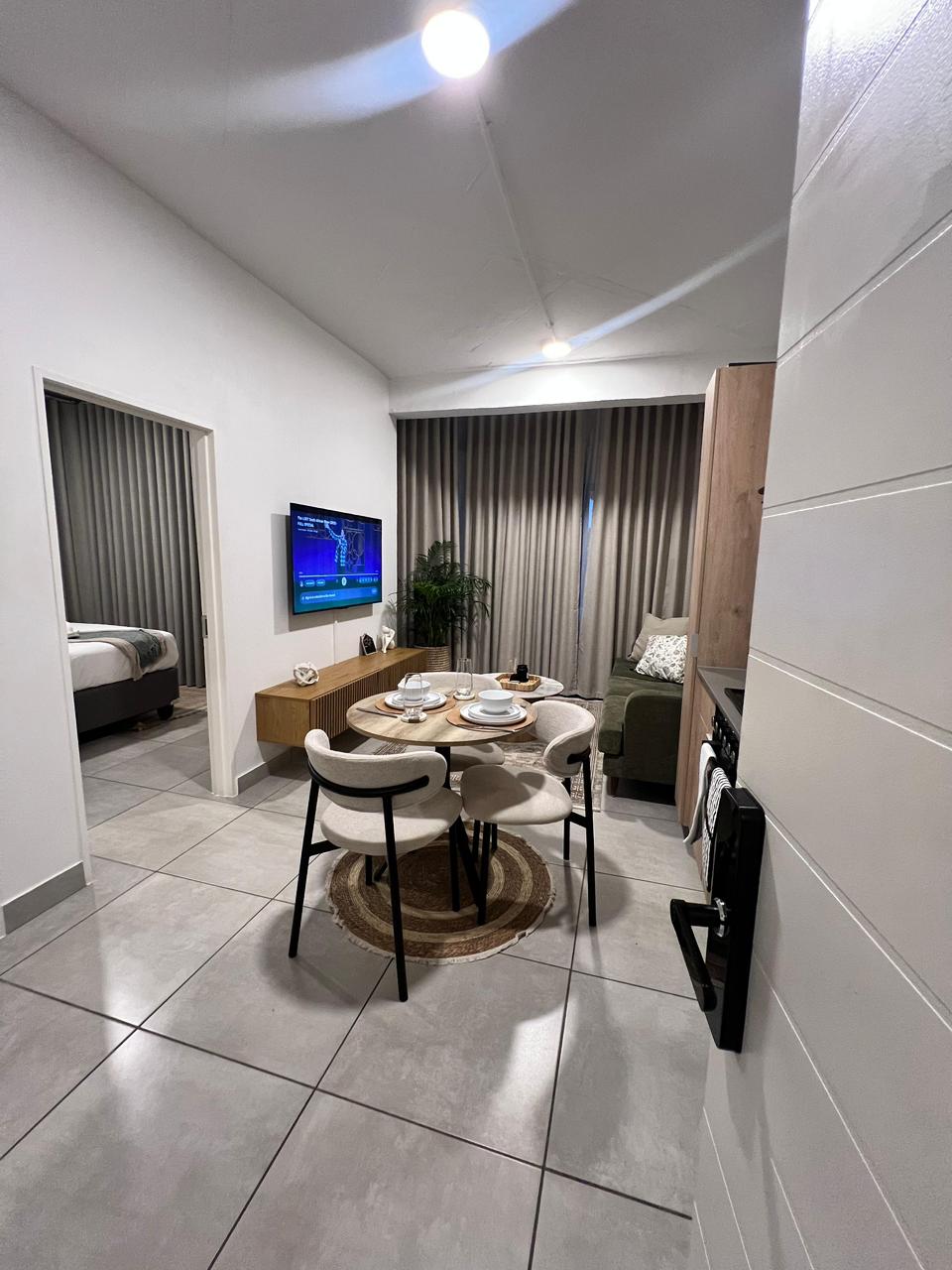 -A cute apartment in Little Falls/West Rand-Jhb for 2 or 3 people. 2x Beds -INVERTER & 24/7 WATER BACKUP SYSYEM. -A beautiful decorated space with a private entrance, living room with 3/4 bed, kitchenette, separate bathroom, separate bedroom/double bed , but individually run. No shared spaces. -All major fast food chains, grocery stores & malls right on our doorstep. -Free WiFi, TV with Netflix, Disney+, YouTube/Music, +more -42 inch smart TV. - Dedicated Workspace & lots of closet space.