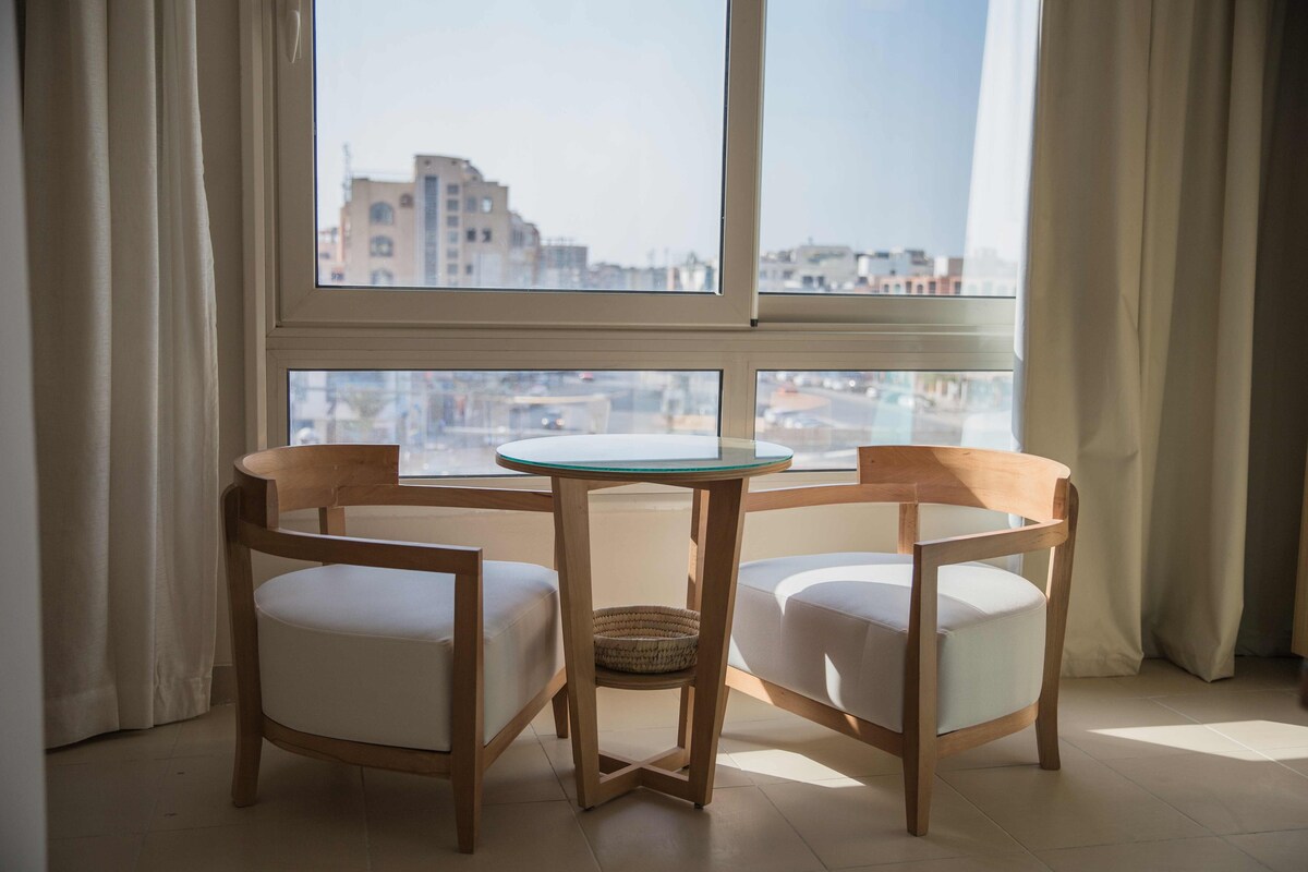 Wake up to breathtaking ocean views and the soothing sound of waves in our elegantly designed beachfront apartment. 🌊✨ Located in the heart of Hurghada, this stylish retreat offers high-end furnishings, calming interiors, and modern amenities for a truly relaxing stay. Enjoy stunning views of the beach. vibrant city life and top attractions—all just moments away! 🏖️🌇