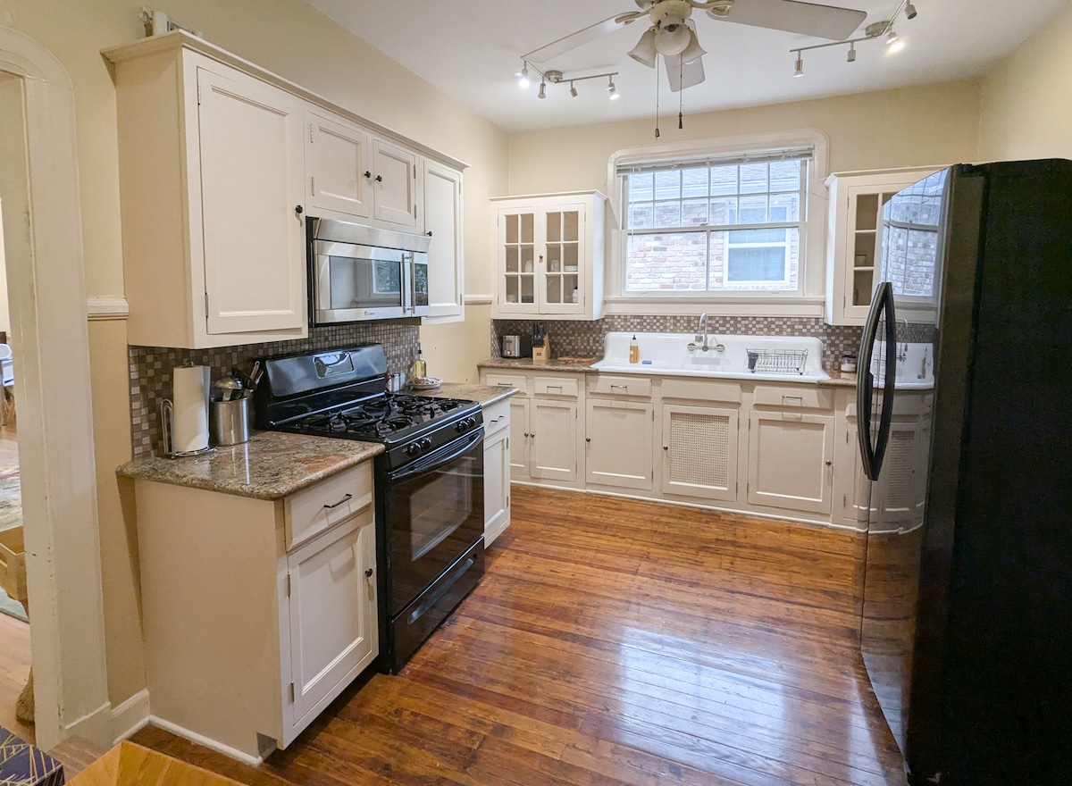 Kürzlich renoviertes „Cottage“ aus den 1890er Jahren von einem erfahrenen Superhost in einem der besten, sichersten und begehbarsten Viertel in NOLA! 1600 Quadratfuß Wohnung inkl. 2 Schlafzimmer mit Kingsize-Betten, 2 komplette Marmorbäder, eine voll ausgestattete Küche und ein privater Eingang unter einem Baldachin aus majestätischen Eichen. Spaziere zu den Straßen Tulane, Loyola, Maple und Oak, zum Audubon Park, zum Zoo und zu den Rad- und Joggingwegen am MS River. Oder steig in die St. Charles Streetcar vor dem Haus für eine direkte Fahrt zum Garden District, Canal St und French Quarter!