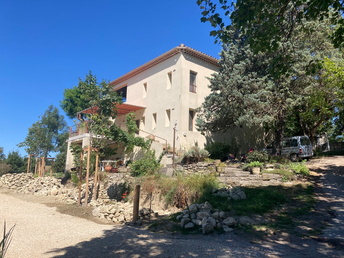 Willkommen im Jas de Fernand! Wir begrüßen Sie in einer Unterkunft, die eine alte Scheune von 60 m2 ist. Sie ist Teil eines alten Bauernhauses aus dem 19. Jahrhundert, im Herzen eines drei Hektar großen Grundstücks und wurde komplett renoviert. Die Terrasse ist auf dem alten Taubenschlag des Jas gebaut. Sie können die Ruhe und den freien Blick auf die umliegende Landschaft und die umliegenden Dörfer genießen.