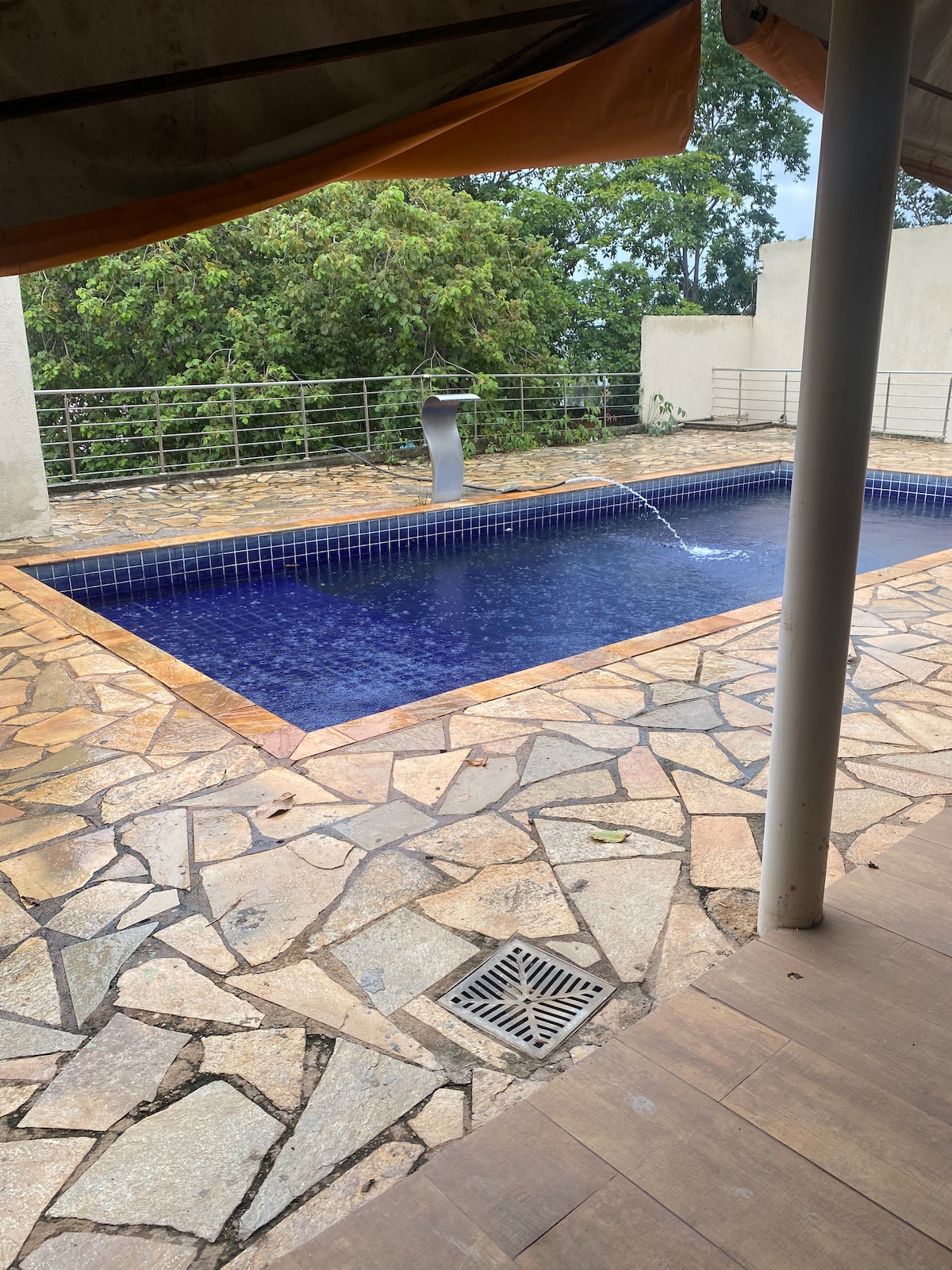 Das Manga Doce Chalet ist super charmant, komfortabel und geräumig. Das Zimmer ist hell und luftig, da es riesige Fenster hat. Das Bett ist köstlich, ultra komfortabel mit extra weicher Bettwäsche. Die Dusche verfügt über viel Wasser, das warm und warm ist. Unsere Gäste schlafen wie Engel! Das Beste: Wir befinden uns in Vila Floresta, am Ufer des Flusses São Miguel, einem der schönsten Flüsse in Chapada. In unserem Hinterhof haben wir einen atemberaubenden natürlichen Pool mit exklusivem Zugang für unsere Gäste. Es gibt eine private Küche.