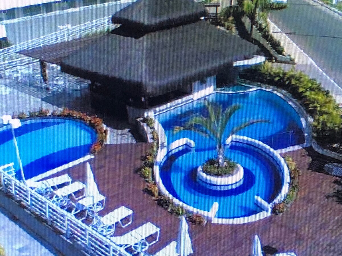 Wohnanlage mit verschiedenen Pools, Wet-Bar, Fitnessraum, Spielhalle für Erwachsene und Kinder, Spielzimmer, Spa, Beauty-Center, Wäscherei. In der Wohnung: schnelles und exklusives WLAN, im Schlafzimmer (Klimaanlage, Smart-TV 42", großes und bequemes Bett, exklusives Badezimmer), Wohnzimmer (Klimaanlage, Smart-TV 50", 2 Sofas (1 Schlafsofa), Badezimmer zur allgemeinen Nutzung), Küche (Kühlschrank, Kochfeld, Backofen, Mikrowelle, Wasserfilter, Toaster, Kaffeemaschine, Schneebesen, Geschirr, Besteck usw.).