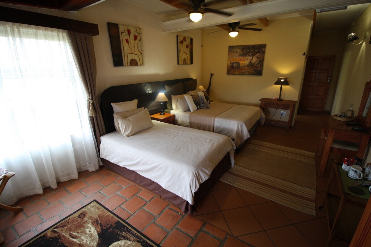 Das Hotel Zimmer Deluxe ist eine moderne Suite, ideal für den dringend benötigten Urlaub. Sie bietet Platz für zwei Erwachsene und bietet einen Blick auf zwei der Fliegenfischenteiche, ein Wasserspiel und Gärten. Die Zimmer sind luxuriös eingerichtet und bestehen aus Doppelbetten und einem Kamin. *Frühstück inbegriffen 2 Erwachsene und 1 Kind unter 5 Jahren 1 Schlafzimmer Ausstattung der Zimmer: Klimaanlage Kleiderschrank Badezimmer mit Badewanne Bar-Kühlschrank Tee- und Kaffeezubereitungsset Tresor Bad mit Dusche Haartrockner Handtücher TV - DSTV (begrenzte Kanäle)